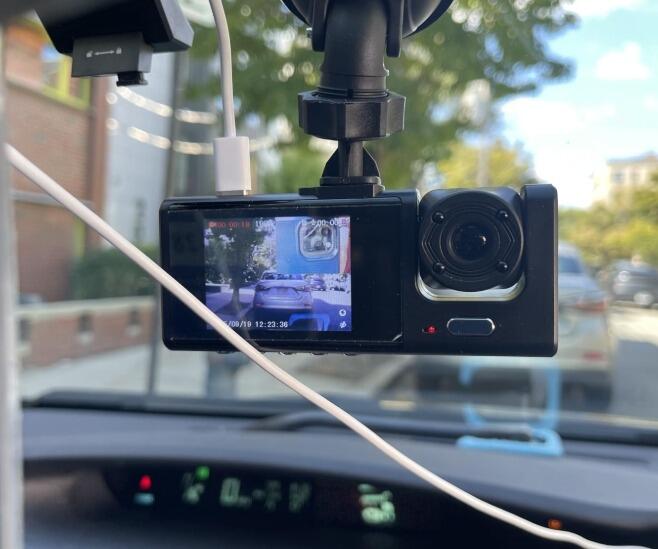 Su lente gran angular capta una vista amplia de la carretera y su sensor de movimiento activa la grabación automática al detectar actividad cerca del vehículo.