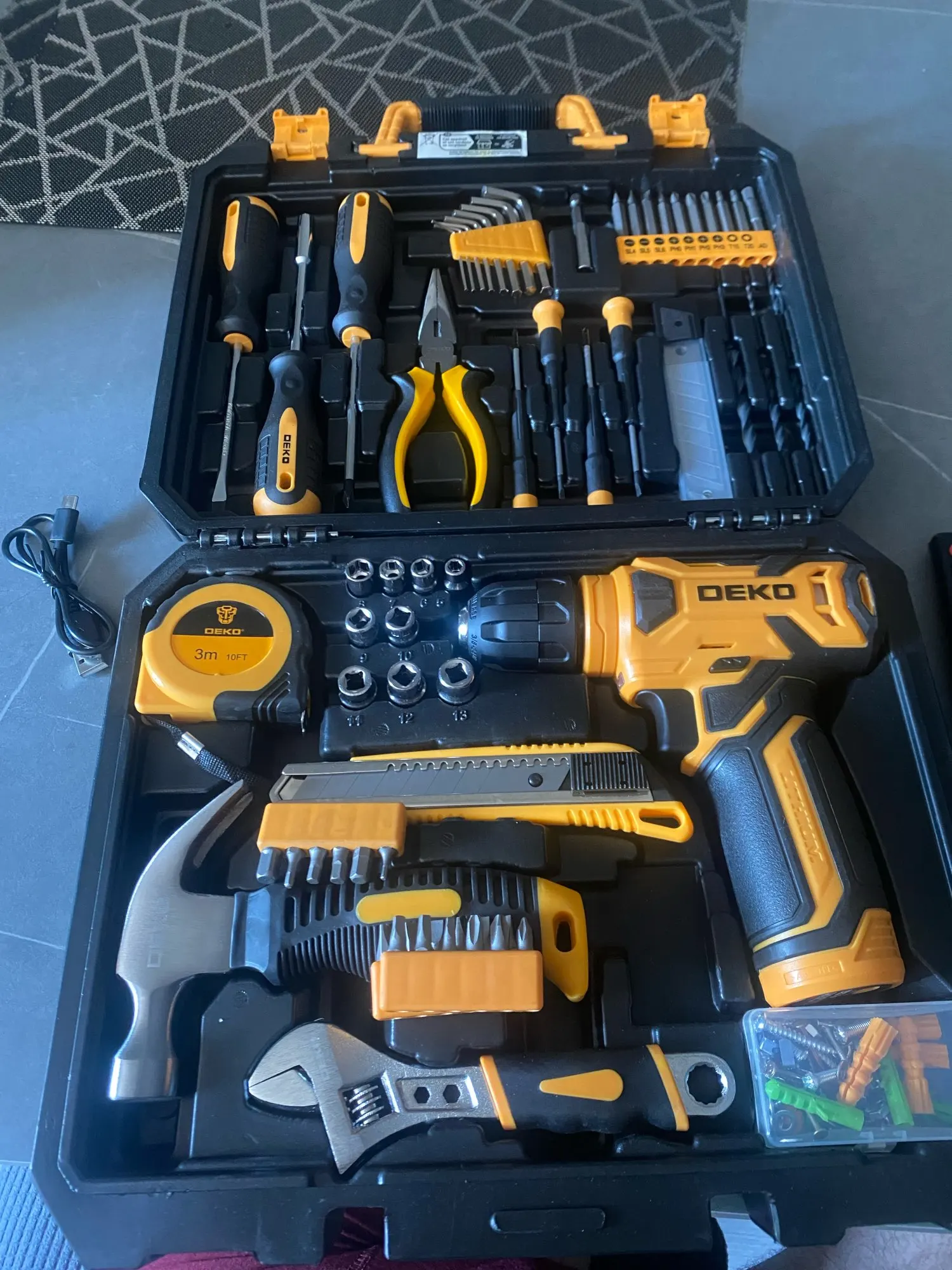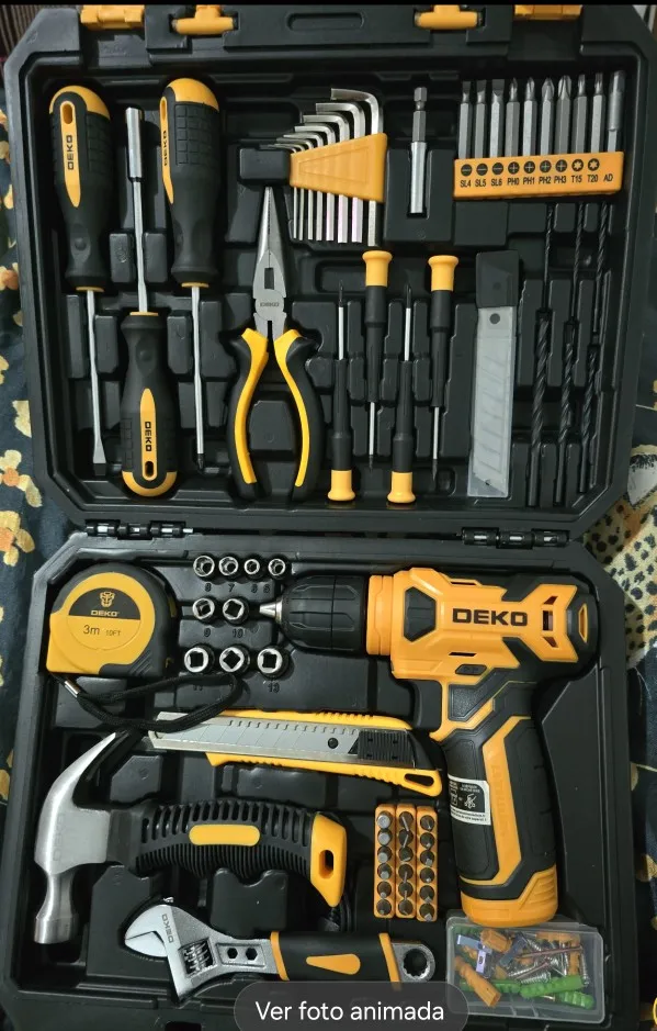 Incluye un kit de accesorios completo con brocas, puntas y dados, además de un maletín resistente que mantiene todo organizado y fácil de transportar. ⚙️